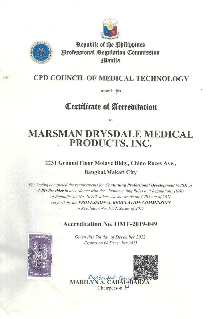 MDMPI is proud to be accredited by the CPD Council of Medical Technology, reinforcing our commitment to professional development and excellence in medical diagnostics. We are also ISO 9001:2015 certified, ensuring strict quality control, operational efficiency, and customer satisfaction. These certifications reflect our dedication to delivering world-class diagnostic solutions while maintaining the highest industry standards. Through continuous innovation, we remain committed to providing reliable, high-quality products that support healthcare professionals in improving patient care.